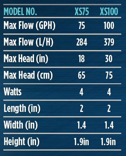 The XS Splash Series mag drive pumps are versatile and energy efficient, making them ideal for small fountains, statuary and aquarium applications. Unique to these pumps is the flow control, which allows for great flexibility to meet the need for specific flow rates.